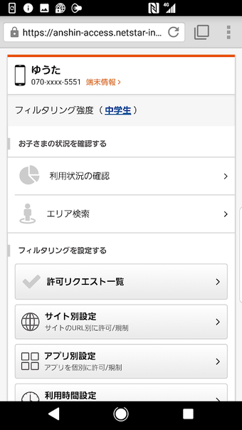 このアプリケーションでは、各ウェブサイトやアプリのフィルタリングレベルを設定することができます。
